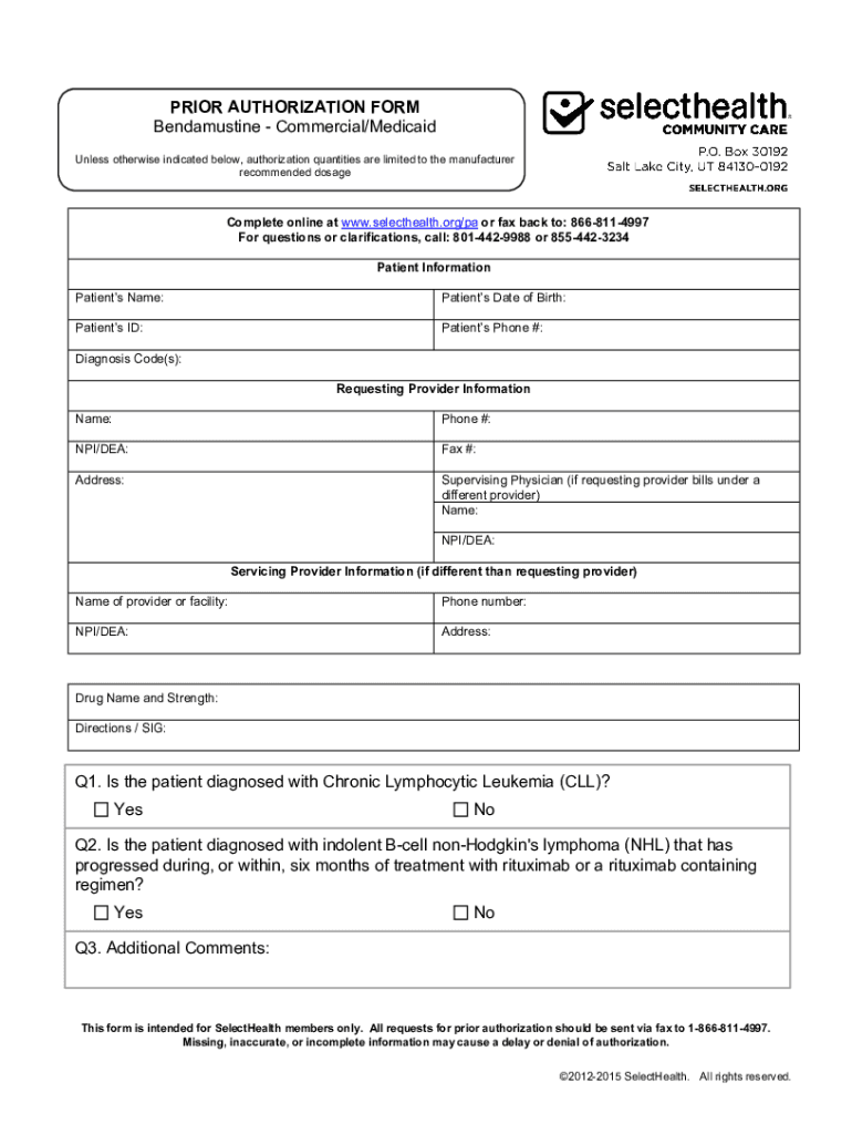 PRIOR AUTHORIZATION FORM Commercial/Medicaid Unless otherwise indicated below, authorization quantities are limited to the manufacturer recommended dosageComplete online at www.selecthealth.org/pa