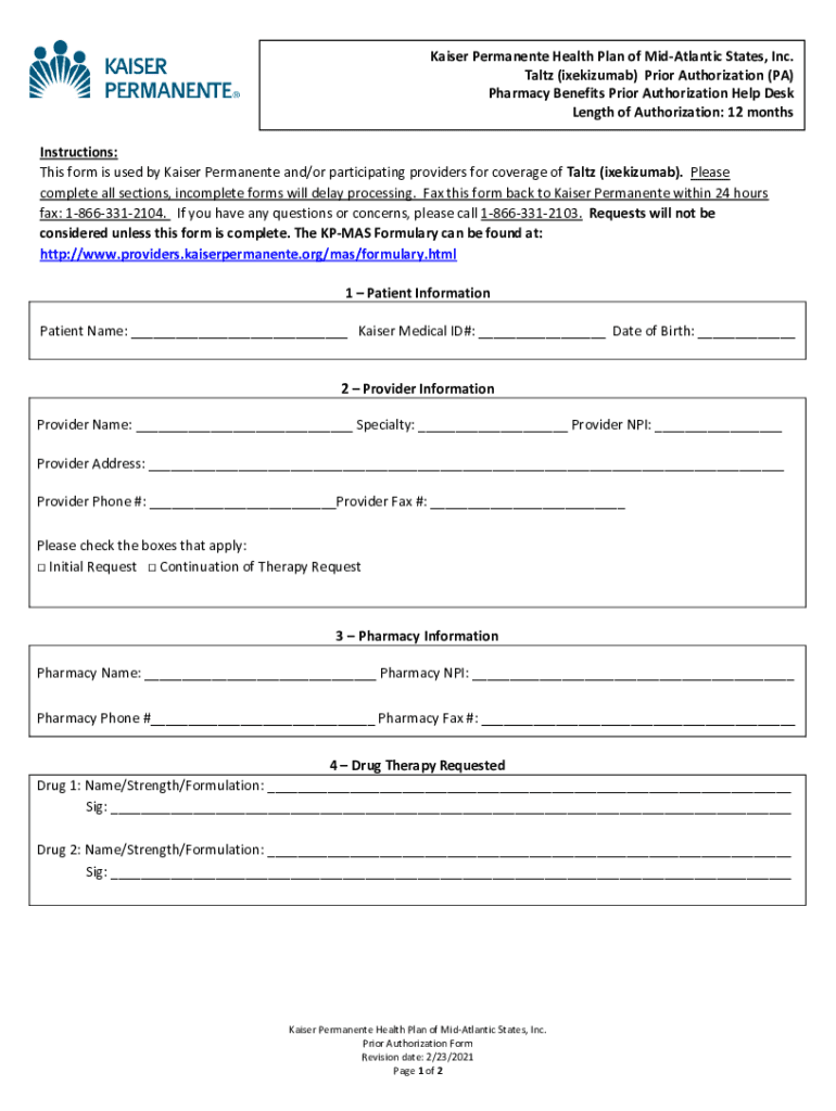 Get the free Prior Authorization (PA) Form for Taltz (ixekizumab). Prior Authorization (PA) Form ...