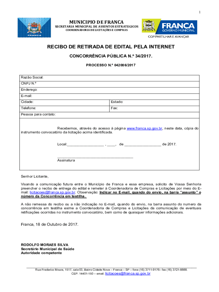 O número da concorrência deve ser preenchido nos documentos específicos de participação que geralmente incluem a identificação do processo e informações sobre a empresa.