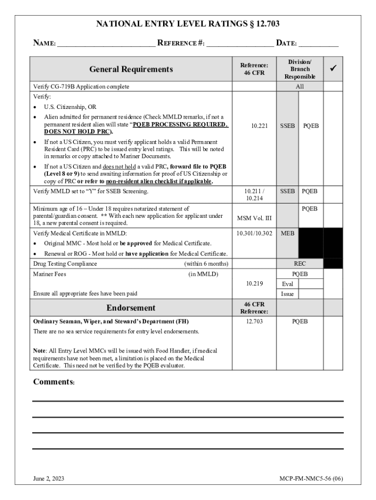 Get the free 46 CFR Part 12 Subpart G -- Entry-Level National Ratings ...