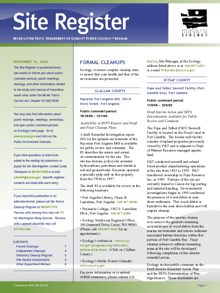 FORMAL CLEANUPSNOVEMBER 16, 2006