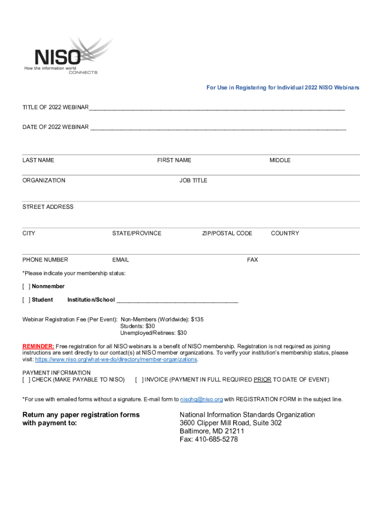 DATE OF 2022 WEBINAR ___LAST NAMEFIRST NAMEORGANIZATIONMIDDLEJOB TITLESTREET ADDRESSCITYSTATE/PROVINCEPHONE NUMBEREMAILZIP/POSTAL