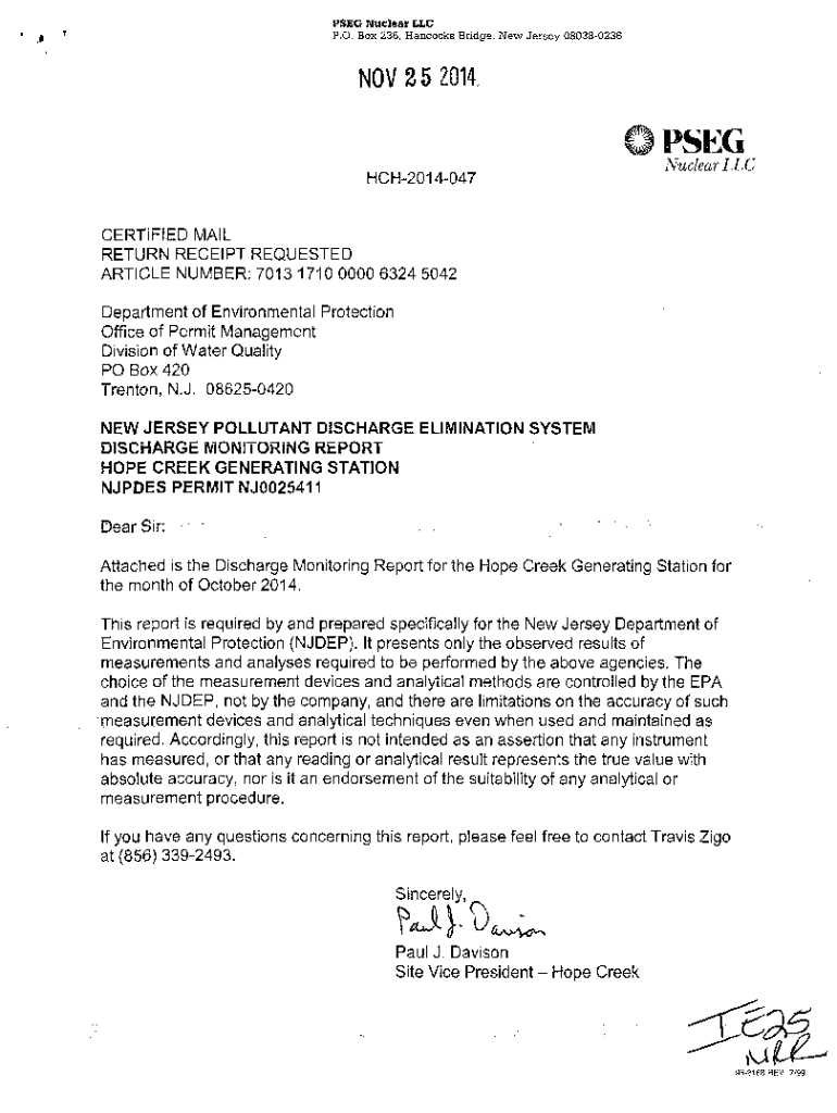 P.O. Box 236, Hancock's Bridge, New Jersey 080380236NOV 2 5 2014,0 PP SEG