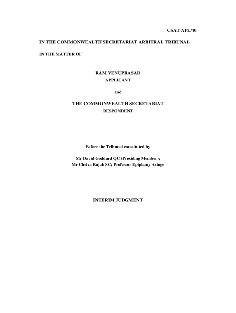 Get the free csat apl/40 in the commonwealth secretariat arbitral tribunal