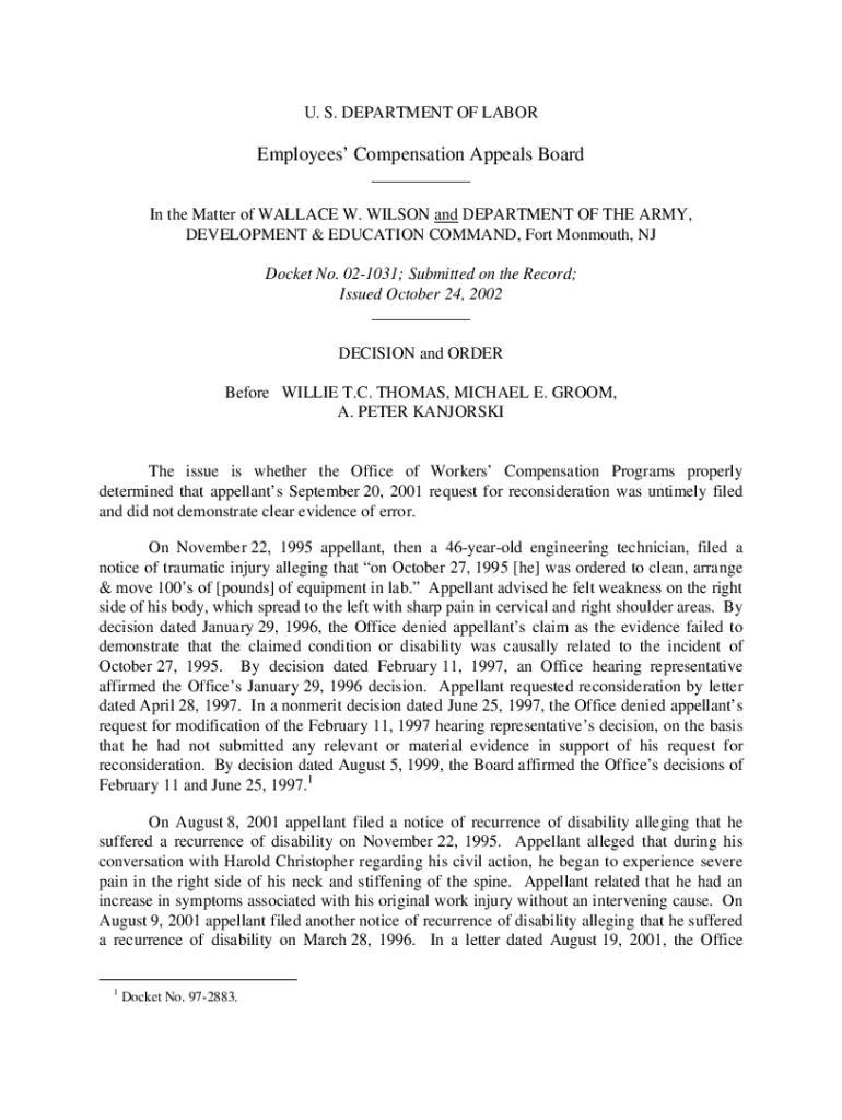 In the Matter of WALLACE W. WILSON and DEPARTMENT OF THE ARMY,