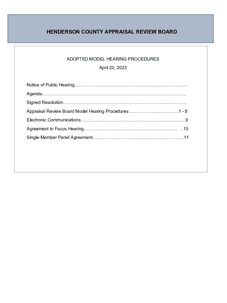 HENDERSON COUNTY APPRAISAL REVIEW BOARDADOPTED MODEL HEARING PROCEDURES