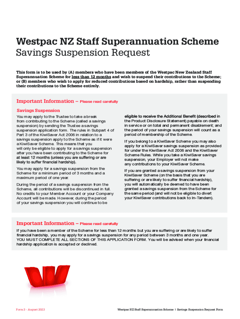 This form is to be used by (A) members who have been members of the Westpac New Zealand Staff