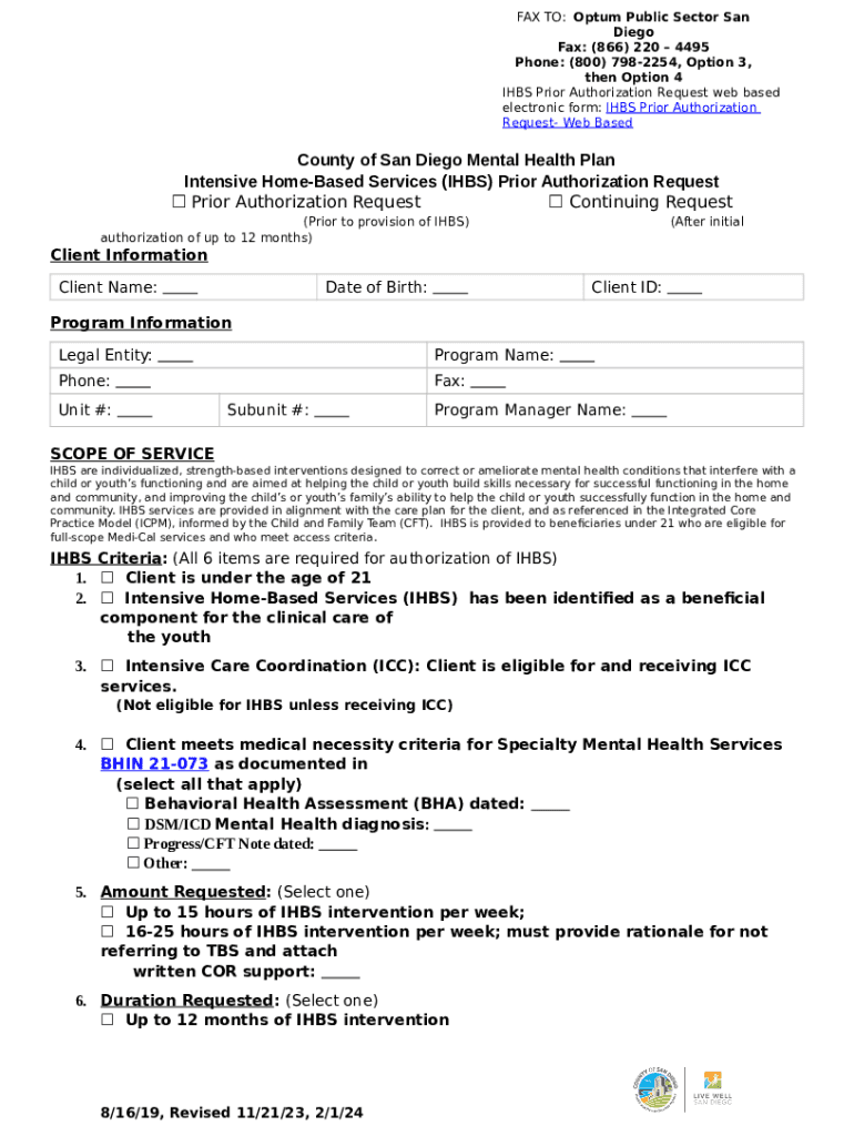 IHBS PRIOR AUTHORIZATION REQUEST FILL (pdf) word template: frequently asked questions