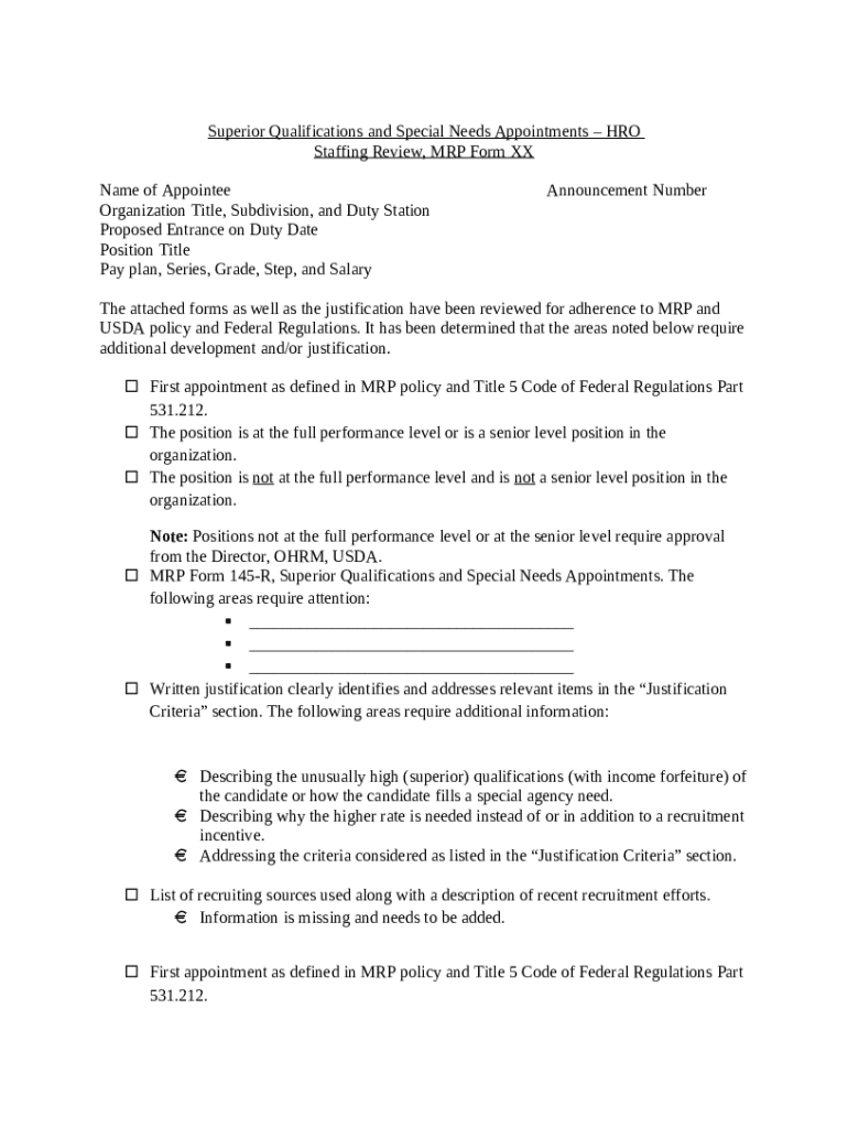 What is What is Superior Qualification and Special Needs Pay- ... Form?
