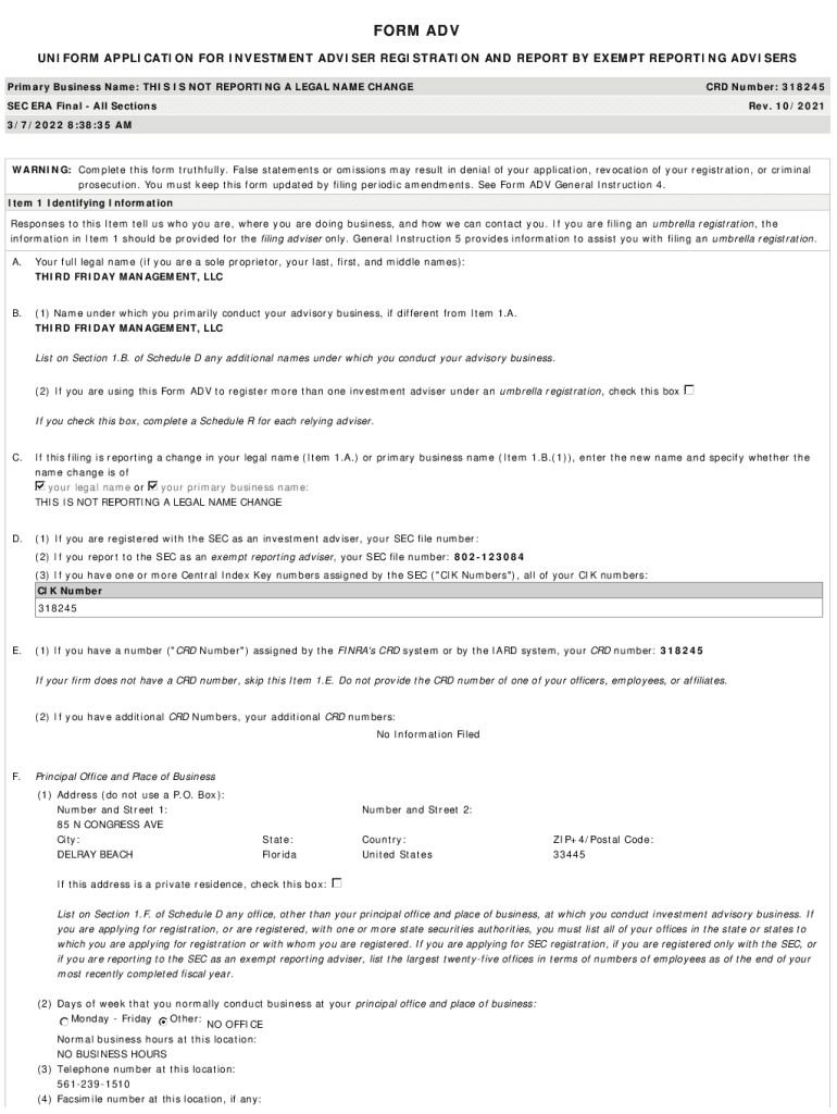 Primary Business Name: THIS IS NOT REPORTING A LEGAL NAME CHANGE CRD Number: 318245SEC ERA