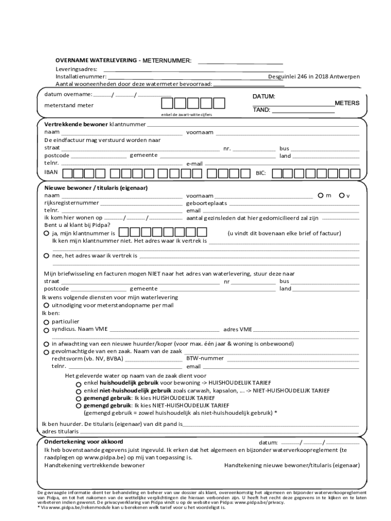 OVERNAME WATERLEVERING WATERMETER 48650602 METERNUMMER: Leveringsadres: Lebonstraat 11 GLVL ACHTER in 2440 Geel. Installatienummer: 80386533 Aantal wooneenheden door deze watermeter bevoorraad: 1