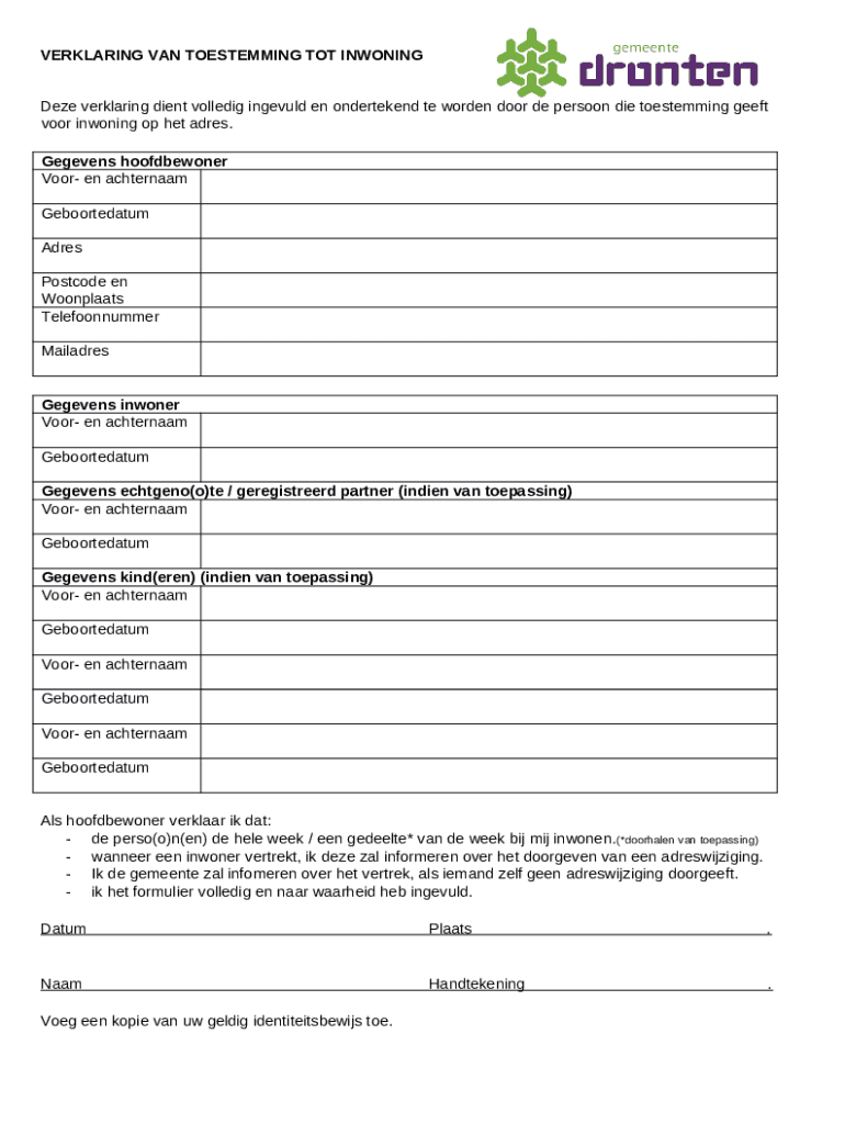 What is Inatie over adreswijziging Toestemming inwoning Form?