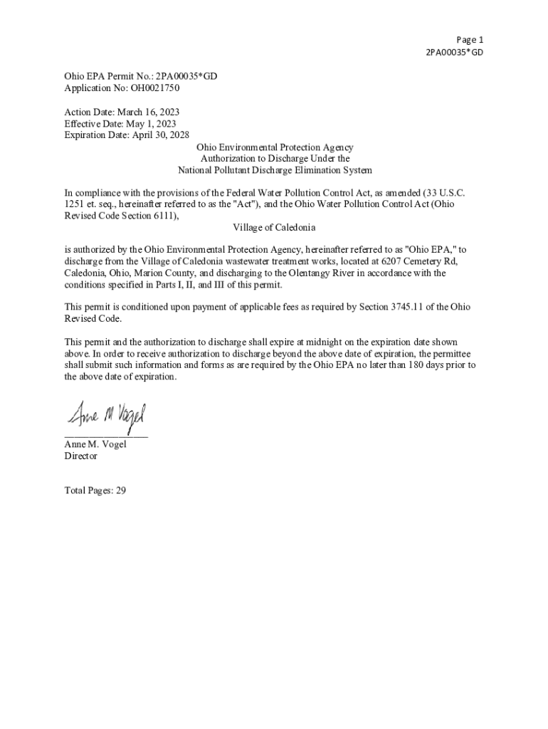 Get the free Page 1 2PA00035*GD Ohio EPA Permit No. - Ohio Environmental ... - epa ohio