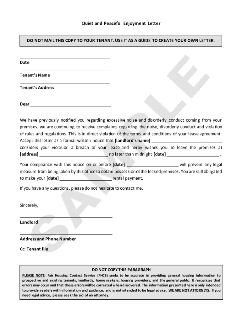 Get the free Use this letter to assert your rights to quiet enjoyment of your ...