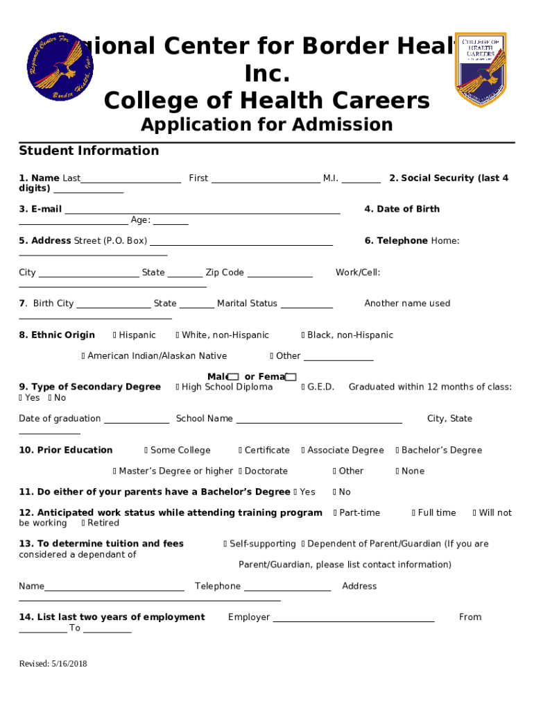 What is College of Health Careers - Regional Center for Border Health ... Form?