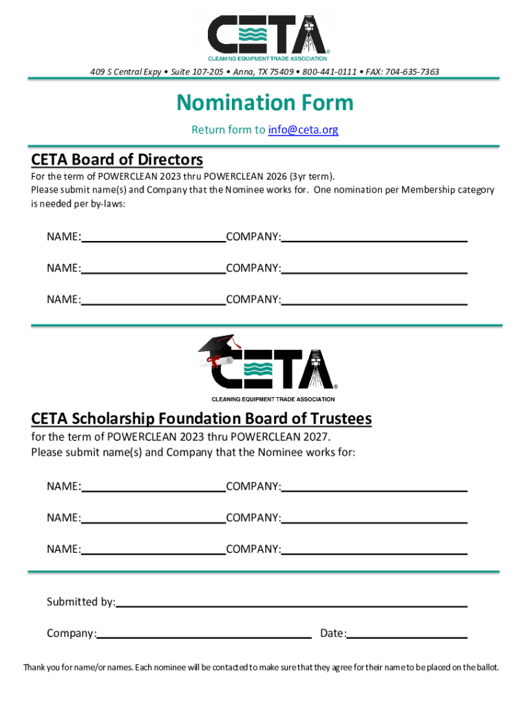 Returnformtoinfo@ceta.orgCETABoardofDirectors
