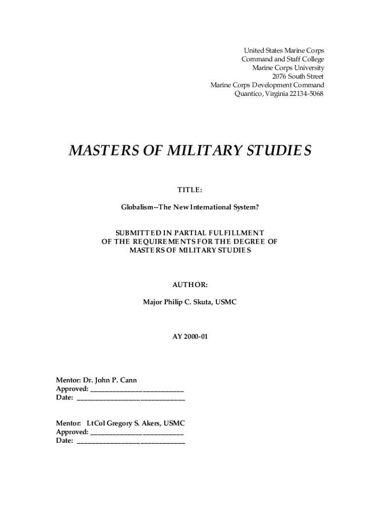 United States Marine Corps Command and Staff College Marine Corps University 2076 South Street Marine Corps Development Command Quantico, Virginia 221345068MASTERS OF MILITARY STUDIES TITLE: GlobalismThe