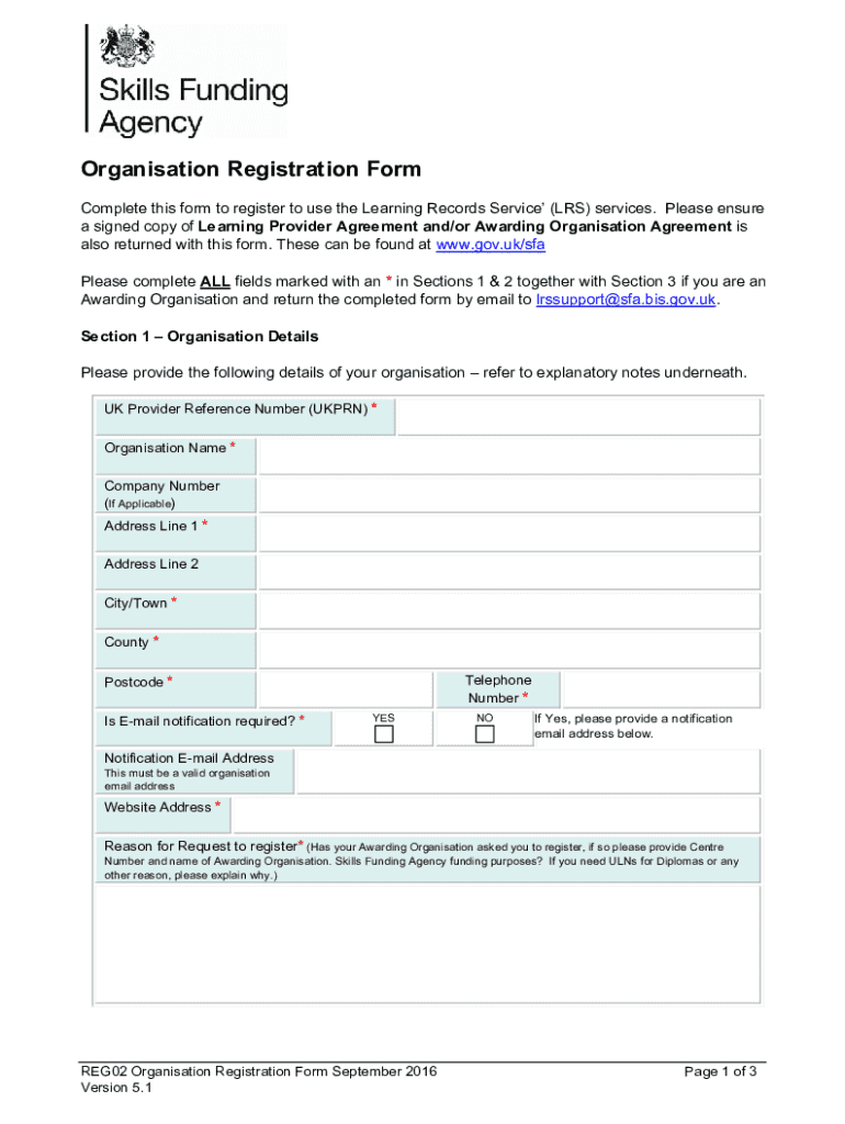 Organisation Registration Form Complete this form to register to use the Learning Records Service (LRS) services. Please ensure a signed copy of Learning Provider Agreement and/or Awarding Organisation