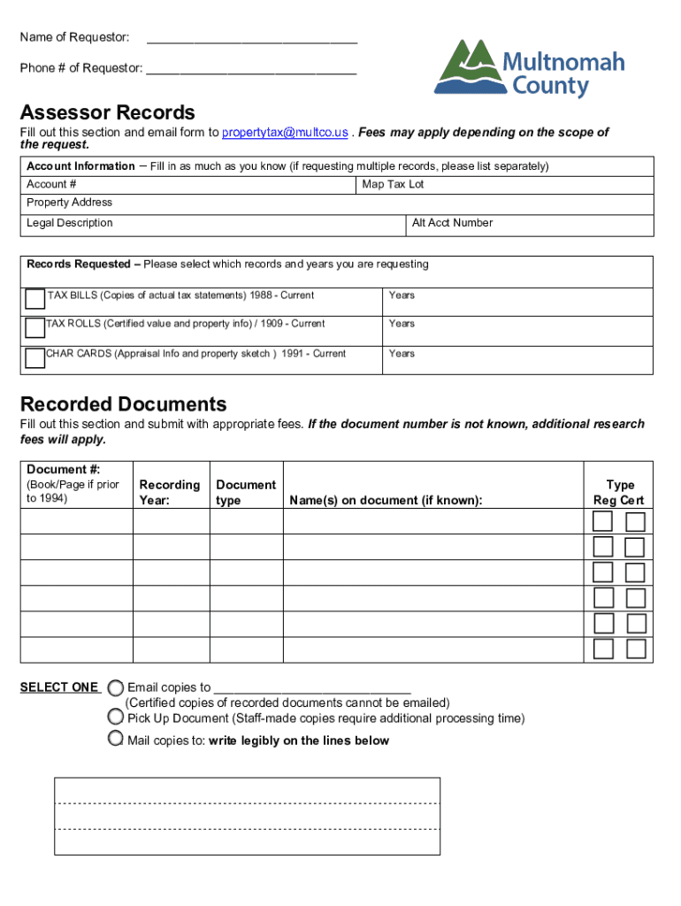 RECORDS REQUESTS Multnomah County division of Assessment, Recording and Taxation (DART) maintains various historic records related to assessment and taxation. The records are provided to the public