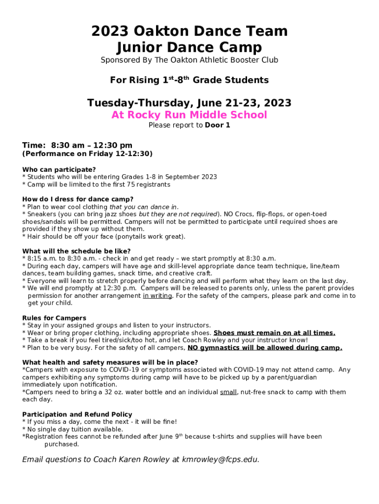 Frequently asked questions about Junior Dance Camp Registration template