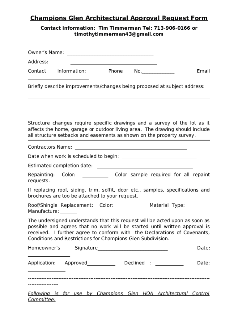 Champions Glen Architectural Approval Request template instructions