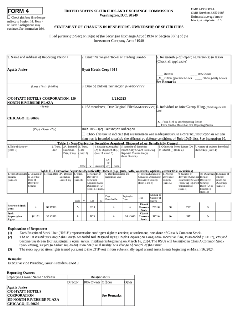 What is Hyatt Hotels Corp (: 4, Received: 03/23/2023 17:02:21) Form?
