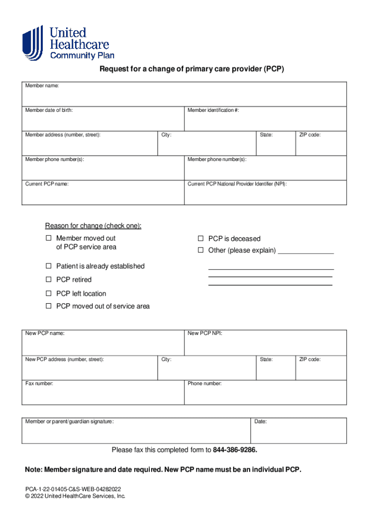 Get the free Primary Care Physician (PCP) Change Fax Form- UnitedHealthcare Community Plan of Mis...