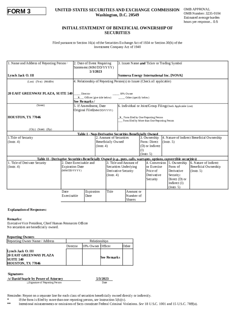 What is Sunnova Energy International Inc. (: 3, Received Form?
