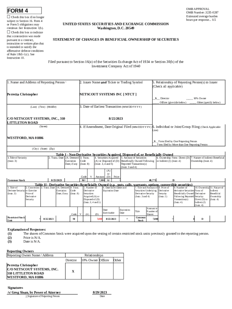 What is NETSCOUT SYSTEMS INC (: 4, Received - cloudfront.net Form?