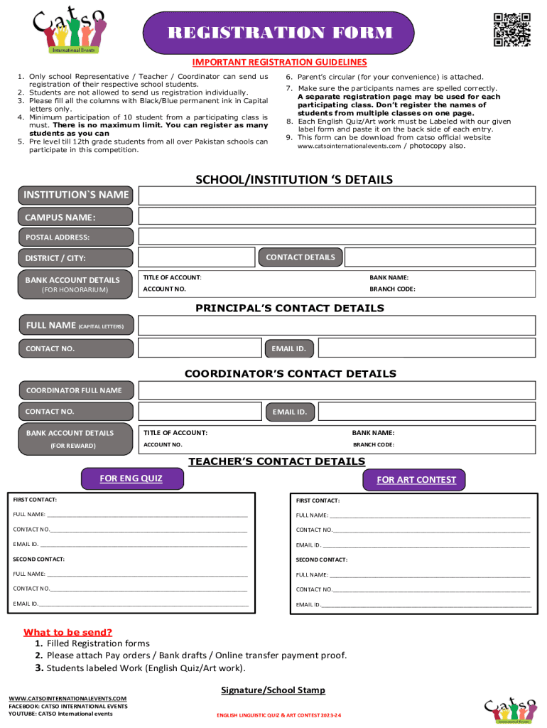REGISTRATION FORM IMPORTANT REGISTRATION GUIDELINES 1. Only school Representative / Teacher / Coordinator can send us registration of their respective school students. 2. Students are not allowed