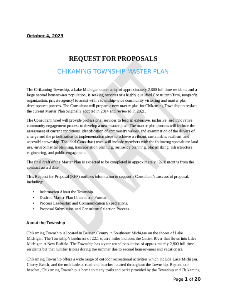 Instructions for the Details of Chikaming Master Plan update debated at Oct. 3 ... form