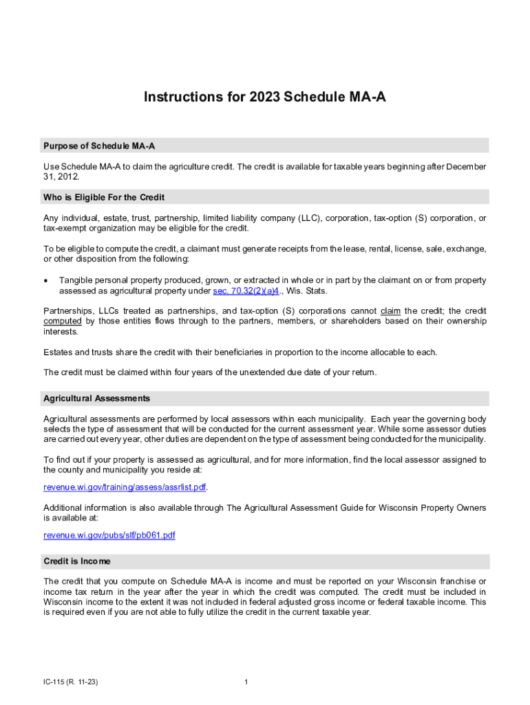Instructions for 2023 Schedule MAA Purpose of Schedule MAA Use Schedule MAA to claim the agriculture credit. The credit is available for taxable years beginning after December 31, 2012. Who is Eligible