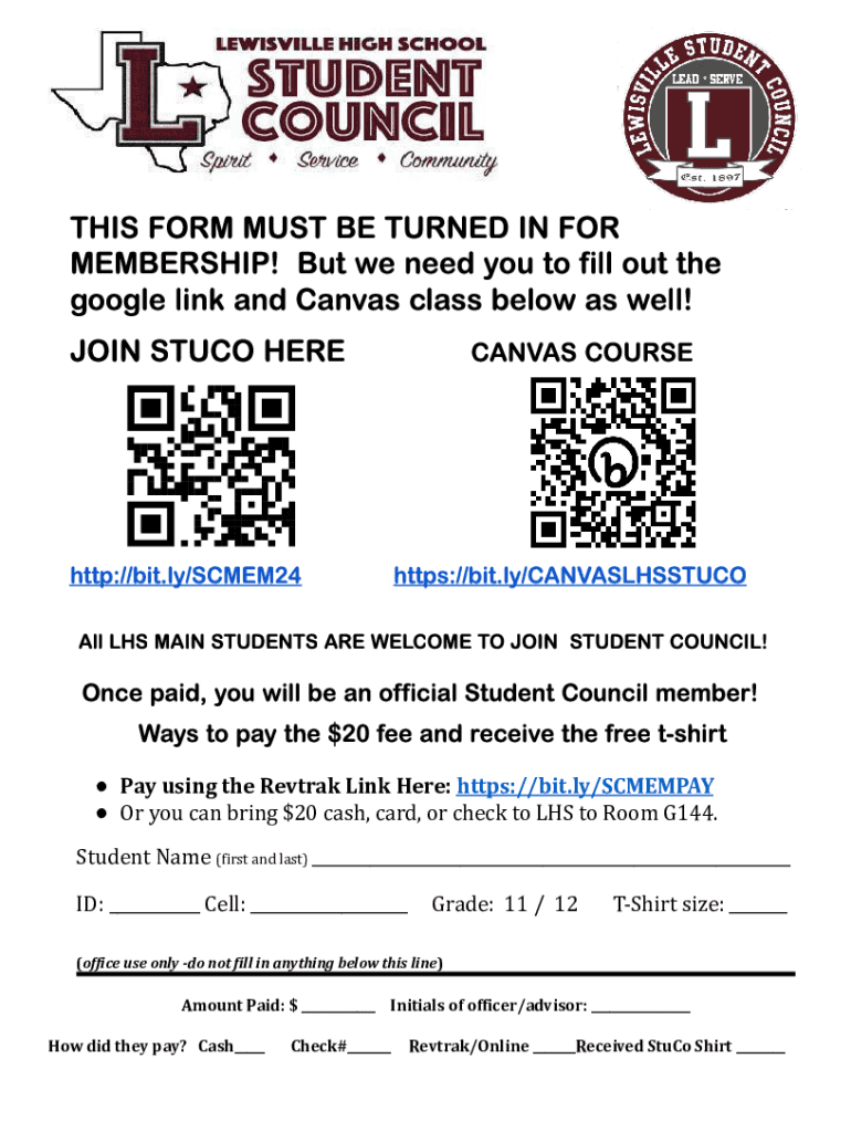 THIS FORM MUST BE TURNED IN FOR MEMBERSHIP! But we need you to fill out the google link and Canvas class below as well! JOIN STUCO HERE CANVAS COURSEhttp://bit.ly/SCMEM24https://bit.ly/CANVASLHSSTUCOAll