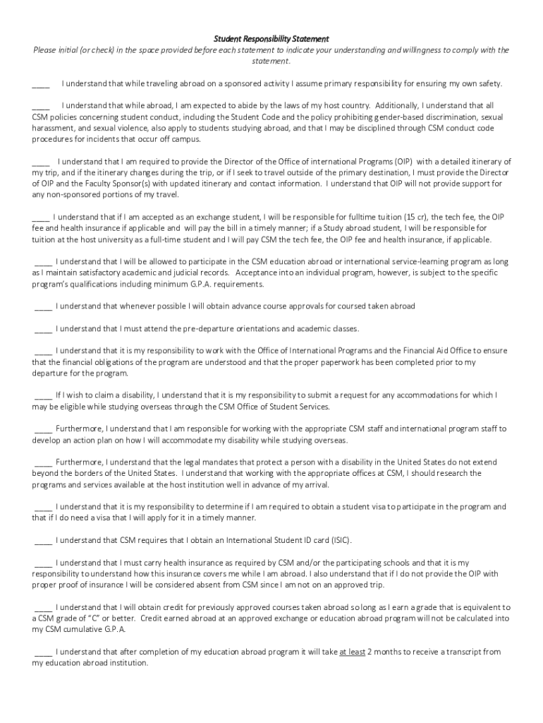 To fill out the student responsibility statement v2016, follow these steps: