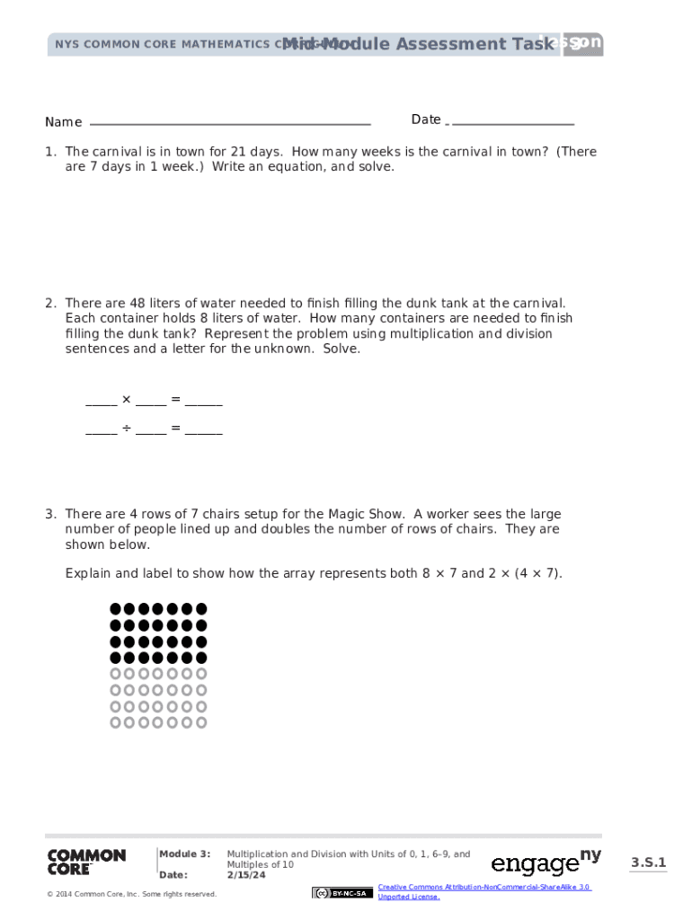 Instructions for the form The carnival is in town for 21 days how many weeks ...