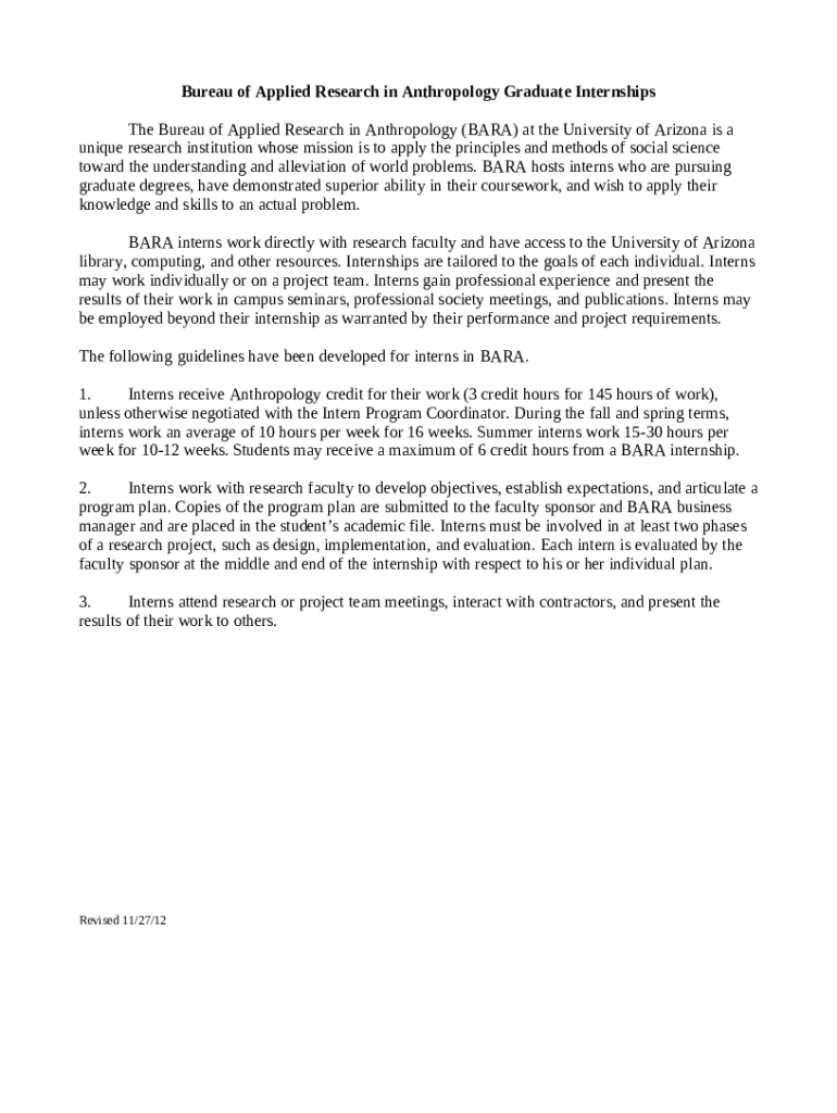 What is Bureau of Applied Research in Anthropology - University of ... - bara arizona Form?