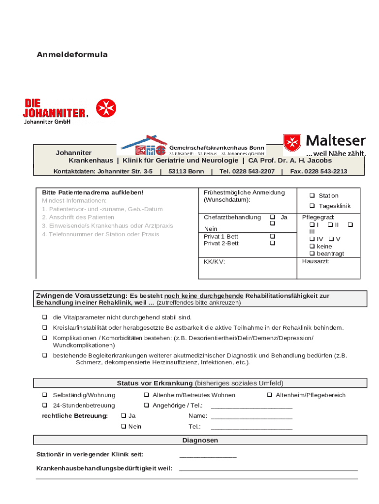 Instructions for the form Geriatric Medicine with Neurology and Day Clinic