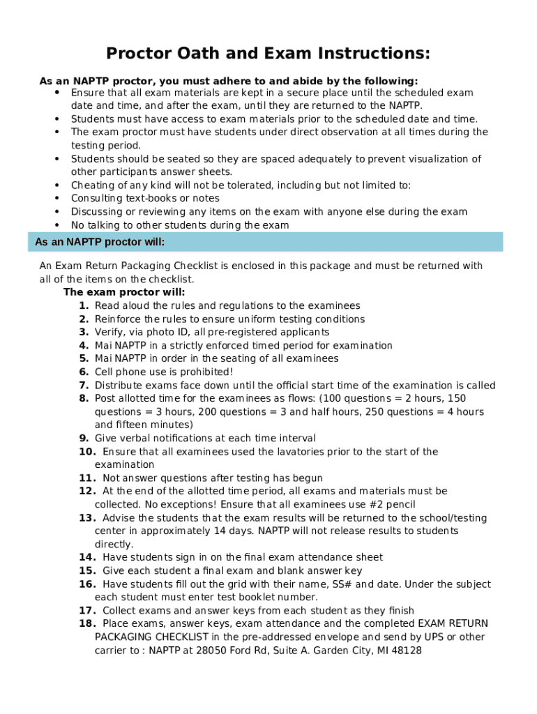 Template Proctor Oath and Exam Instructions instructions