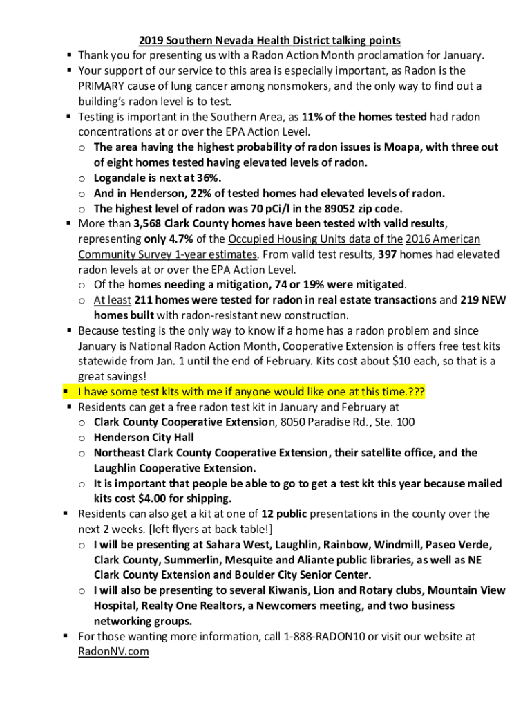 Thank you for presenting us with a Radon Action Month proclamation for January.