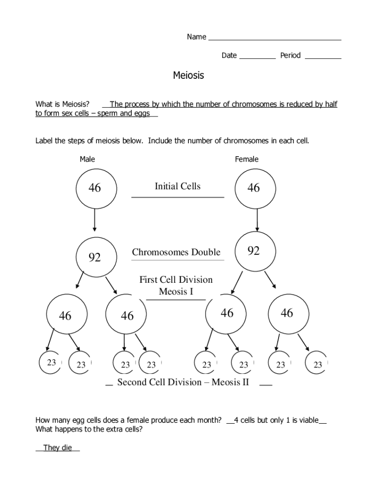 Name ___ Date ___ Period ___Meiosis What is Meiosis? __The process by which the number of chromosomes is reduced by half to form sex cells sperm and eggs__ Label the steps of meiosis below. Include