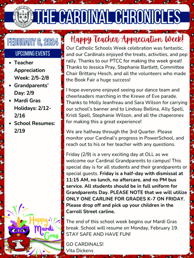today\'s memories to enjoy for a lifetime. Order by Feb. 9 to save $10!2023 Posters, Inc. 23_1125038723February 2024OUR LADY OF THE LAKE PTCCMonth at a Glance