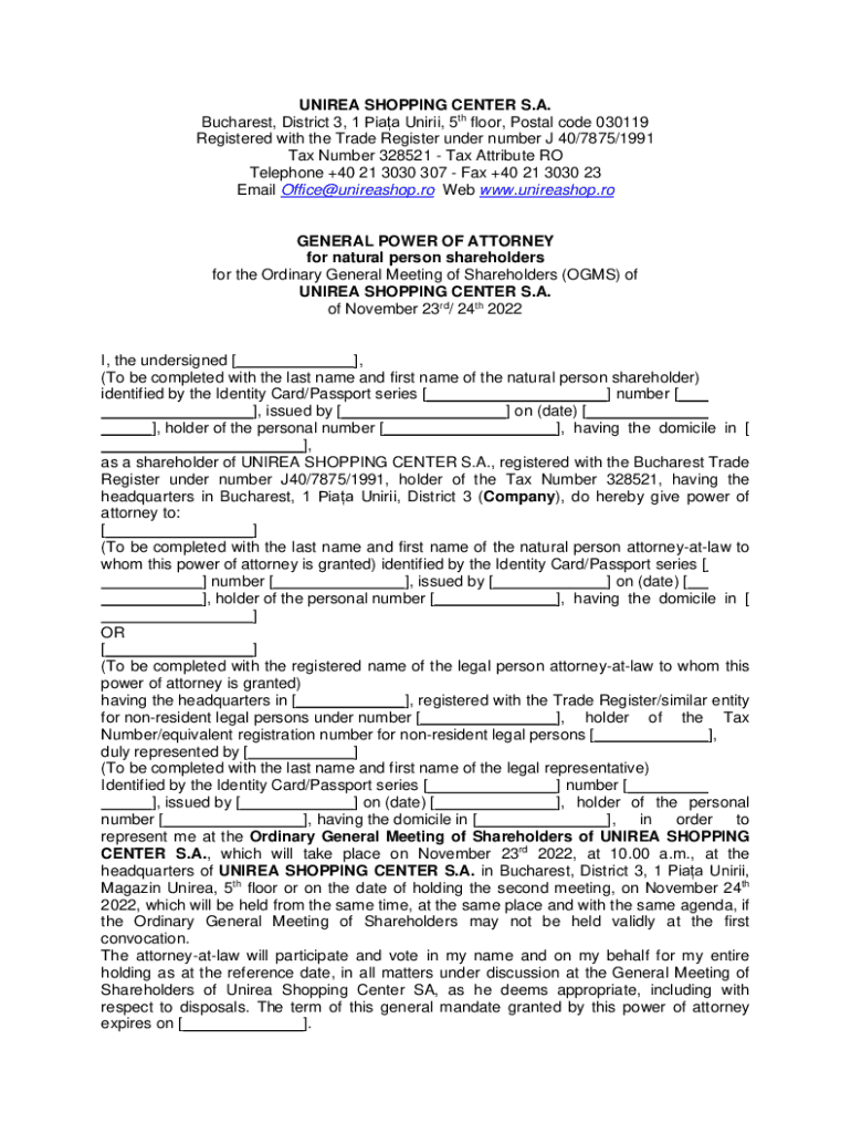 Get the free 1 PROCUR GENERAL pentru acionari persoane fizice ...