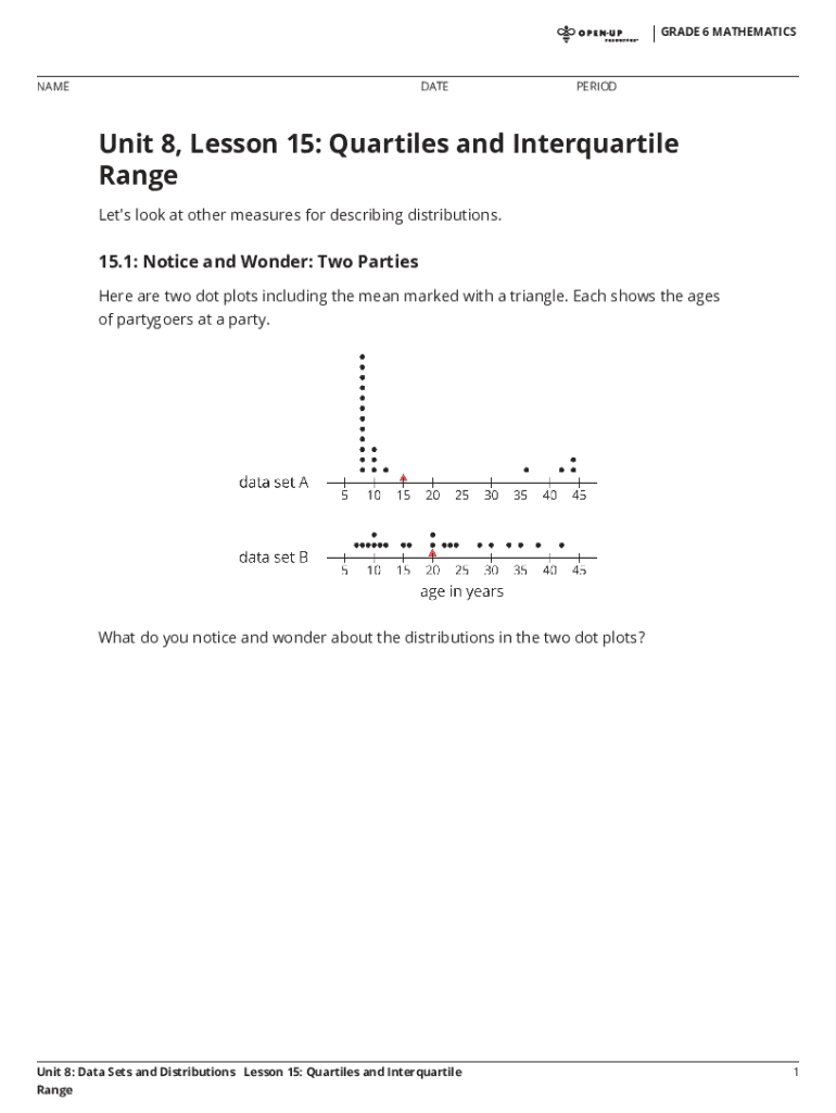 GRADE 6 MATHEMATICS#!GUnit 8, Lesson 15: Quartiles and Interquartile