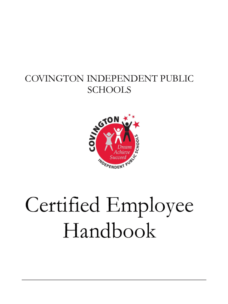 COVINGTON INDEPENDENT PUBLIC SCHOOLSCertified Employee Handbook2023 2024 Certified Employee HandbookAlvin L. Garrison, Superintendent Covington Independent Board of Education 25 East Seventh Street
