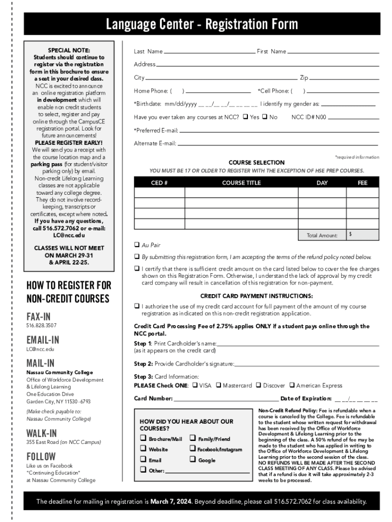 Get the free Language Center - Registration Form