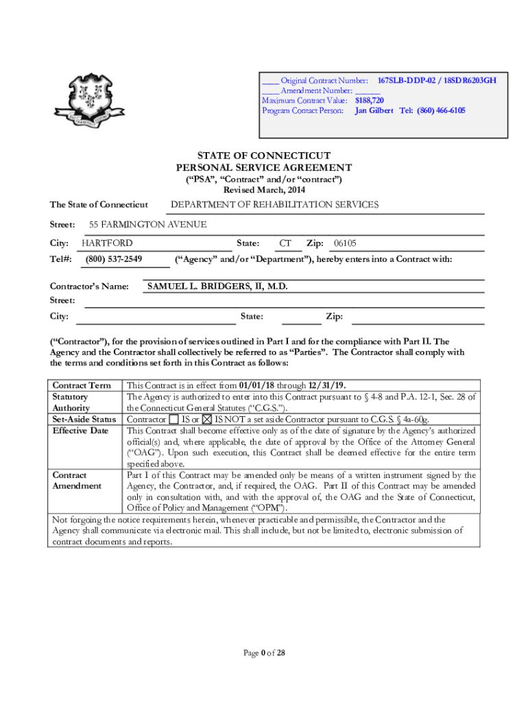 ___ Original Contract Number: 167SLBDDP02 / 18SDR6203GH ___ Amendment Number: ___ Maximum Contract Value: $188,720 Program Contact Person: Jan Gilbert Tel: (860) 4666105STATE OF CONNECTICUT PERSONAL