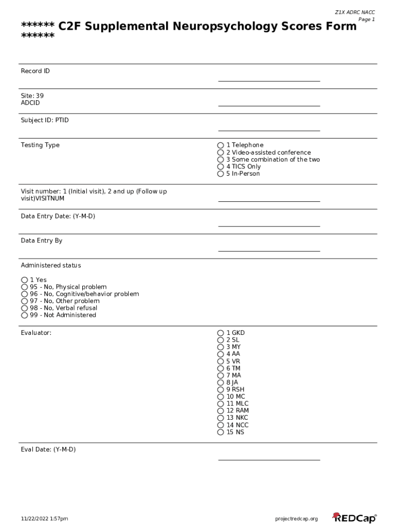 Page 1****** C2F Supplemental Neuropsychology Scores Form