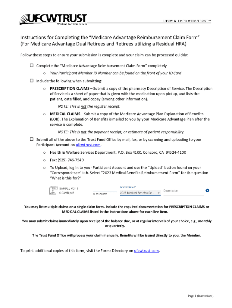 Instructions for Completing the Medicare Advantage Reimbursement Claim Form (For Medicare Advantage Dual Retirees and Retirees utilizing a Residual HRA) Follow these steps to ensure your submission