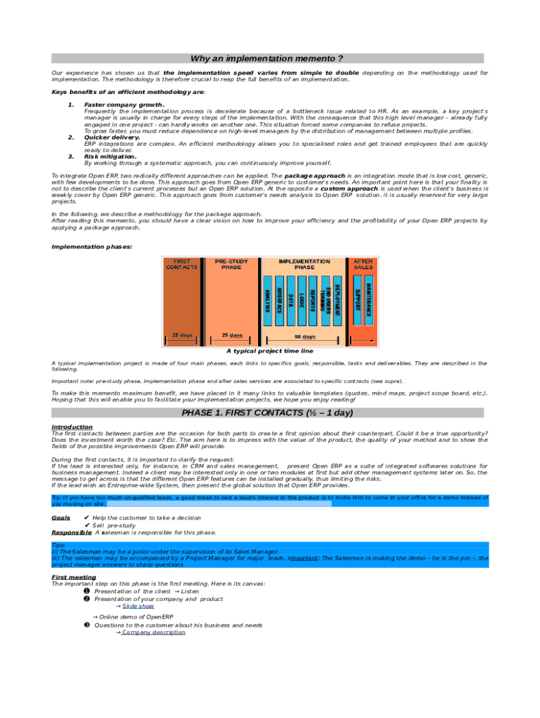 Why an implementation memento ? Our experience has shown us that the implementation speed varies from simple to double depending on the methodology used for implementation. The methodology is therefore