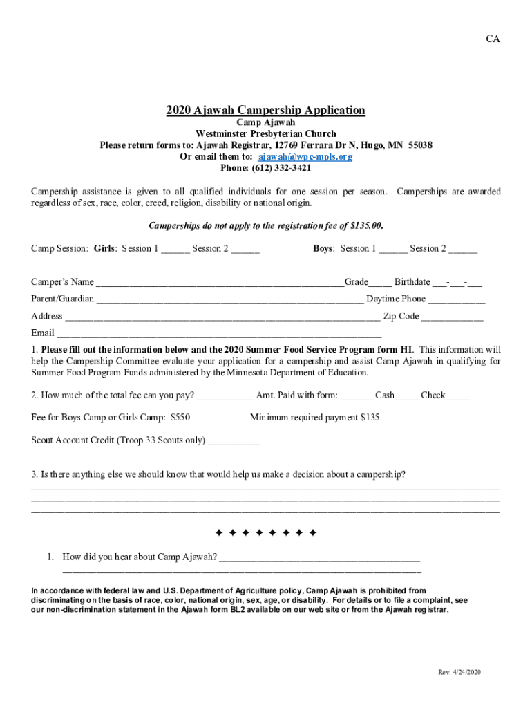 Edit your register for camp ajawah form online
